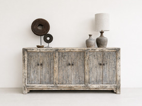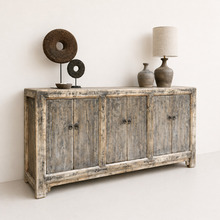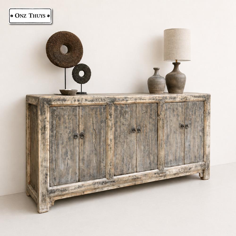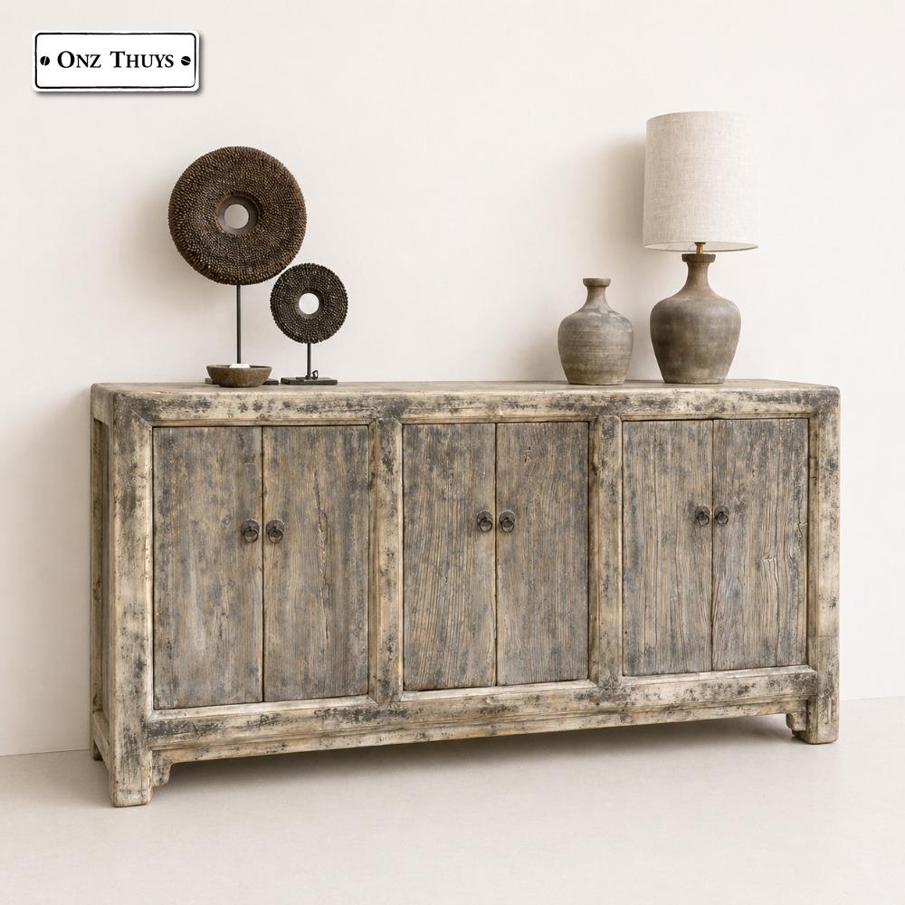 Het dressoir is gemaakt van oud Elm hout. En heeft 6 deuren met veel bergruimte.