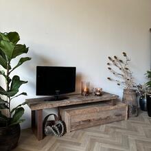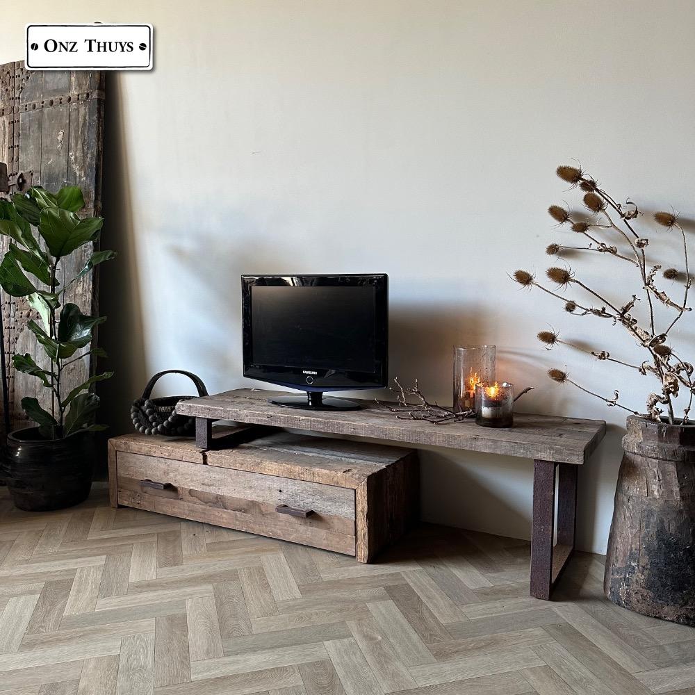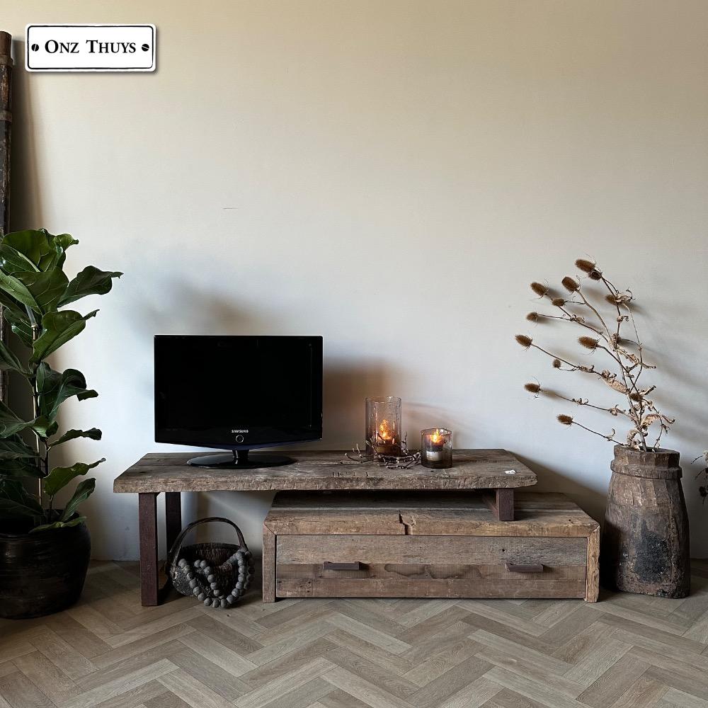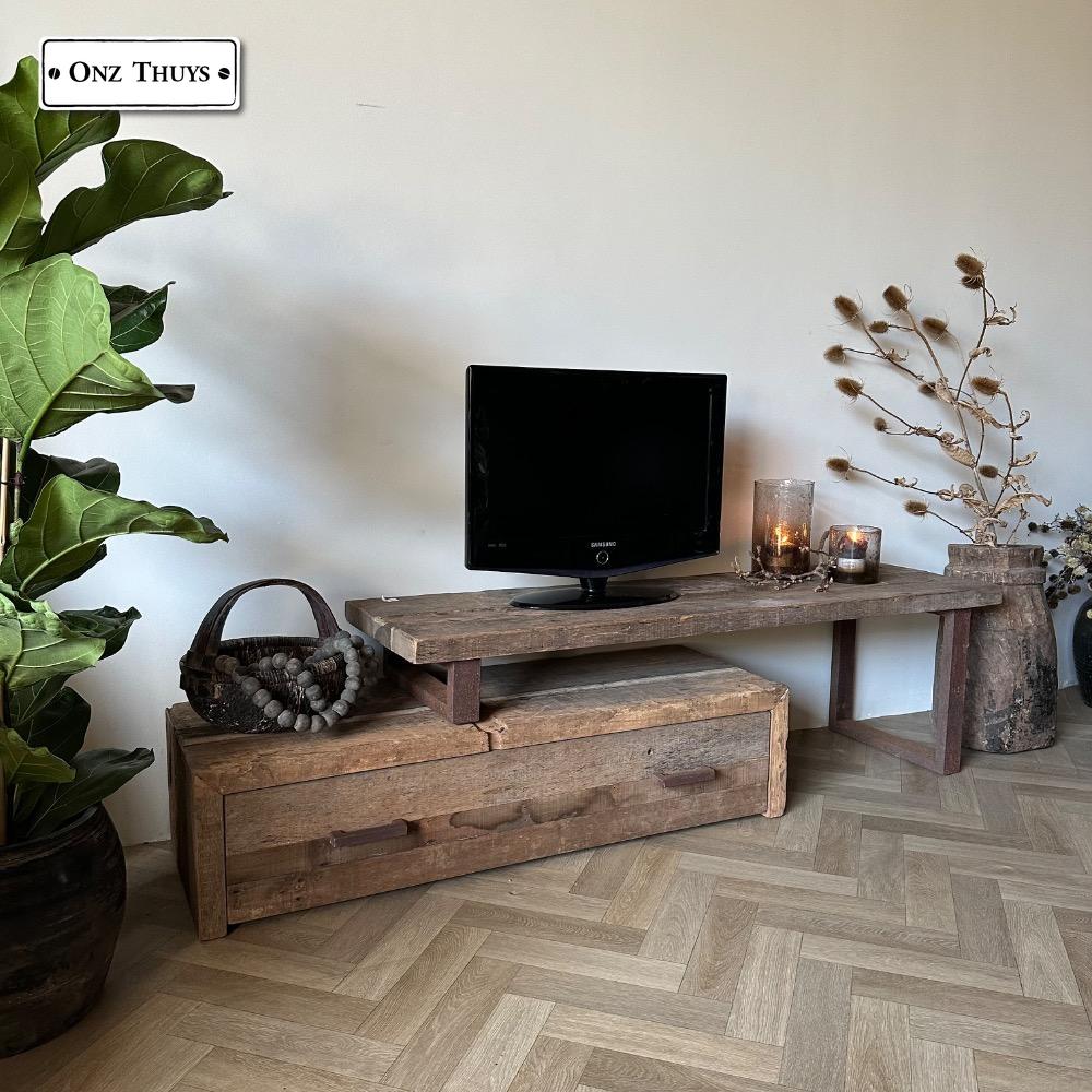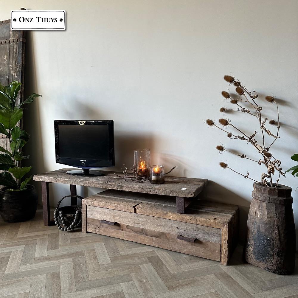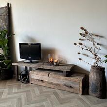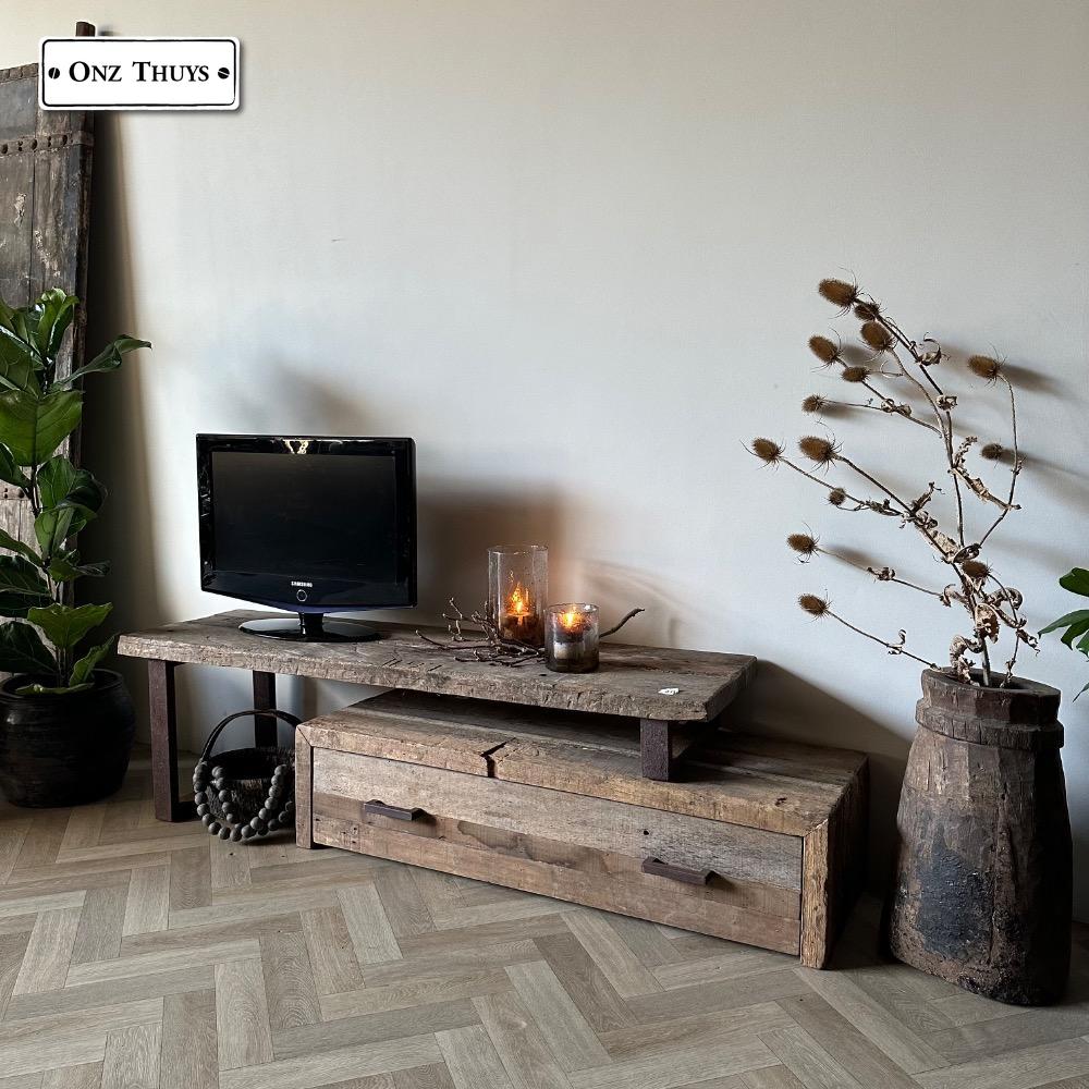 Dit tv meubel is gemaakt van oud massief hout.