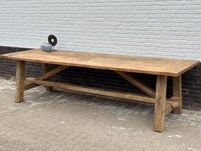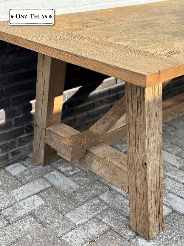 Deze gave tafel is van eeuwen oud massief oud eiken, de tafel is mooi te combineren in een landelijk, sober en modern interieur.